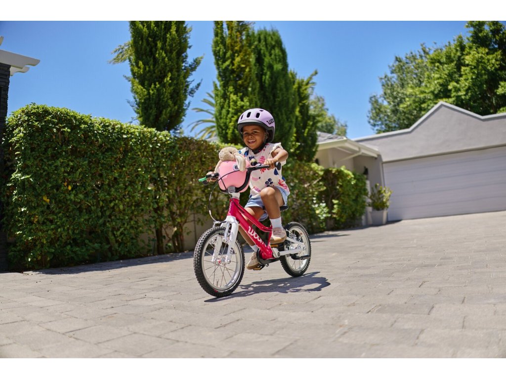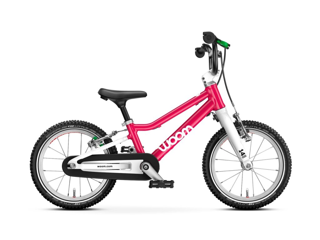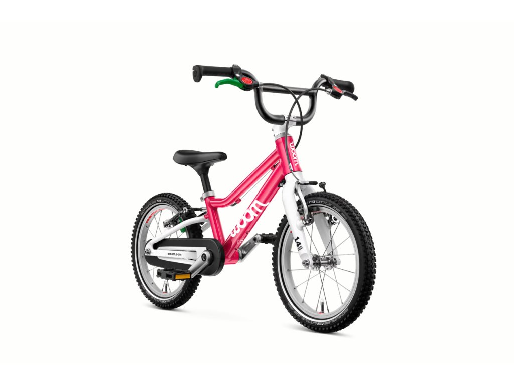 Superľahký detský bicykel Woom GO 2 je určený pre deti vo veku od 3 do 4,5 roka, ktoré merajú od 95 do 110 cm. Nízka hmotnosť a detská geometria so 14" kolesami uľahčí malým jazdcom prechod na bicykel s pedálmi.