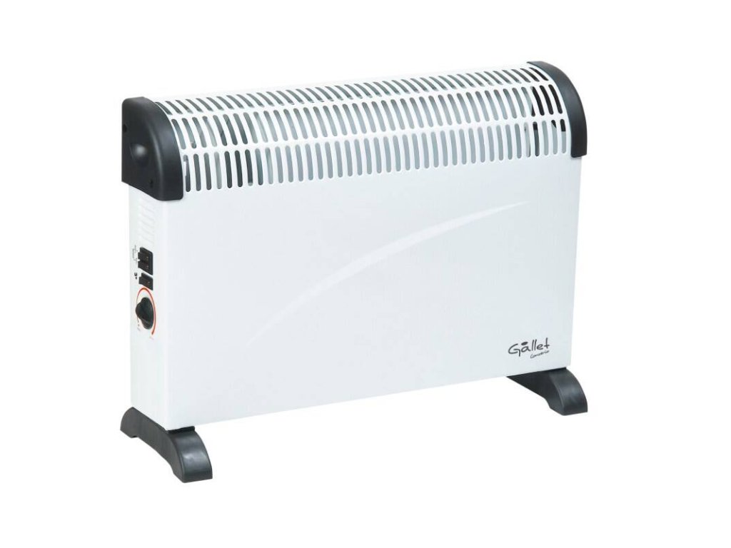 Voľne stojaci teplovzdušný konvektor Gallet CON 100 je ideálnou voľbou do chalúp alebo chát. Prevažne ho oceníte na lokálne vykurovanie. Je vybavený priestorovým termostatom s plynulou reguláciou. Konvektor je ideálny na plynulé vykurovanie miestností. Môžete si nastaviť 3 stupne výkonu: 750 W, 1 250 W a 2 000 W. Konvektor je možné ľahko prenášať z miestnosti do miestnosti. Zabudovaný ventilátor dokáže rozprúdiť vzduch aj bez prikurovania alebo zaistiť rýchlejšie prúdenie tepla do miestnosti. Konvektor Gallet je tiež vybavený protimrazovou funkciou, ktorá ochráni pred poškodením v dôsledku mrazivého počasia.