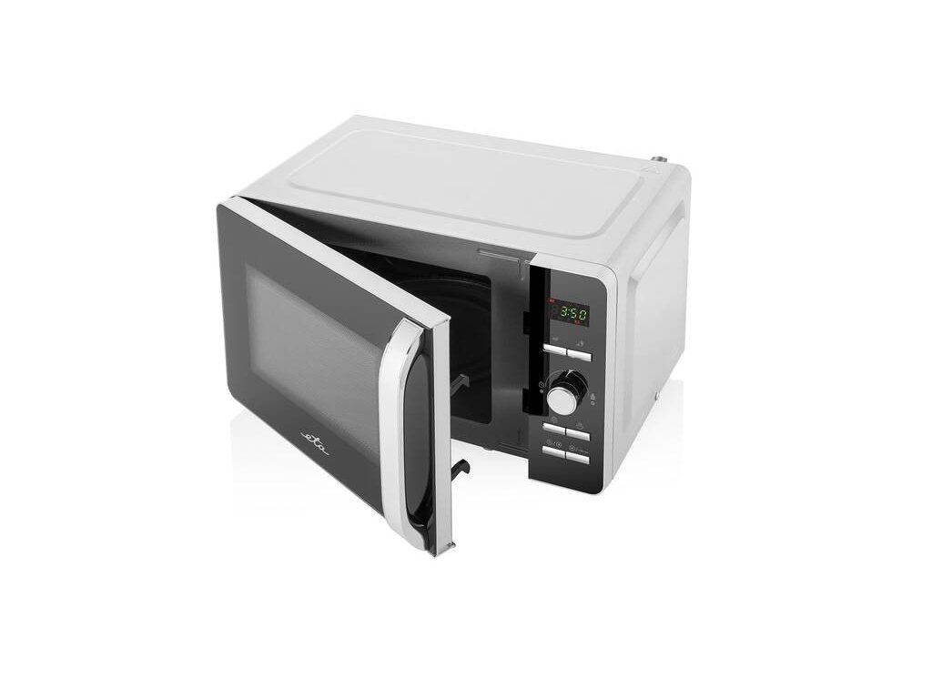 Pokiaľ hľadáte rýchly a jednoduchý spôsob, ako pripraviť jedlo, mikrovlnná rúra ETA 120990020 bude nevyhnutnou súčasťou vašej kuchyne. Ponúka objem 20 litrov a maximálny výkon 700 W. Vybrať si môžete z 8 prednastavených programov: Popcorn, Nápoje, Pizza, Zemiaky, Opätovný ohrev, Zelenina, Mäso a Ryby. K dispozícii pre vás tiež budú aj 3 režimy rozmrazovania a to pre hydinu, mäso a zeleninu. Digitálny displej s regulačným kotúčom vám maximálne uľahčí a spríjemní všetky nastavenia. Mikrovlnná rúra ETA nebude vo vašej kuchyni, ale len praktickým pomocníkom. Vďaka svojmu elegantnému dizajnu so zaoblenými líniami a výrazným držadlom sa stane aj štýlovým doplnkom.