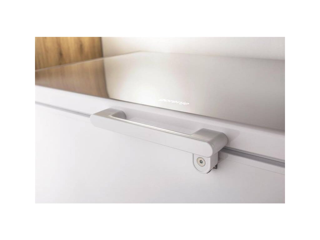 Silný chlad už nie je problém, pretože táto truhlicová mraznička funguje perfektne aj pri okolitých teplotách až –15 °C, čo z nej robí ideálnu voľbu pre garáže a pivnice.