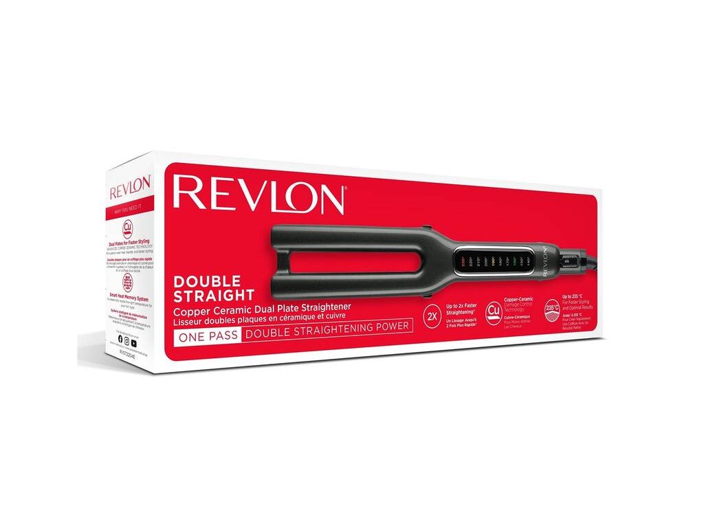 REVLON DOUBLE STRAIGHT je revolučná a bezkonkurenčná žehlička na vlasy, akú ste ešte nezažili! Inovatívny dizajn dvojitej dosky vytvára počas úpravy vlasov, jediným potiahnutím, dvojnásobnú silu narovnávania. Prvá platňa vlasy narovná, pričom bezprostredným prechodom druhej platne budú vaše vlasy hladšie a rovnejšie, než ako ste zvyknutý. Nedochádza k žiadnej strate tepla medzi prechodmi žehliacich plôch, čím sa dvojnásobne urýchľuje proces žehlenia a tým sa skracuje čas pôsobenia horúcich platničiek na vlasy až o 50%. Vlasy budú nielen hodvábne hladké, ale aj zdravšie.